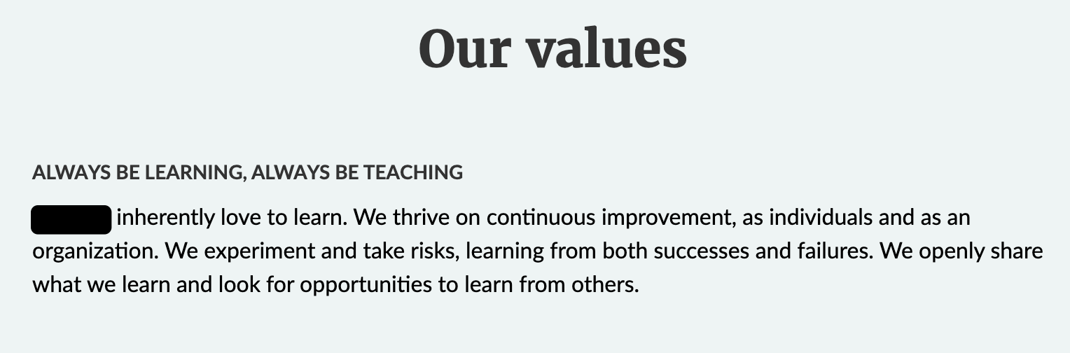 What’s most surprising is the number of companies that claim learning as one of their values.